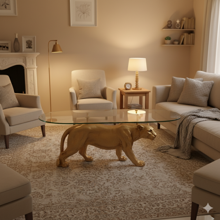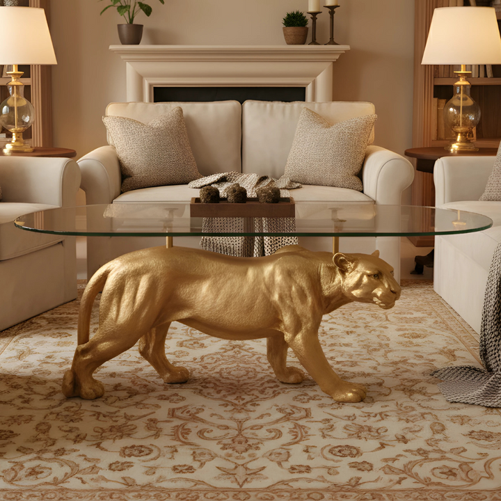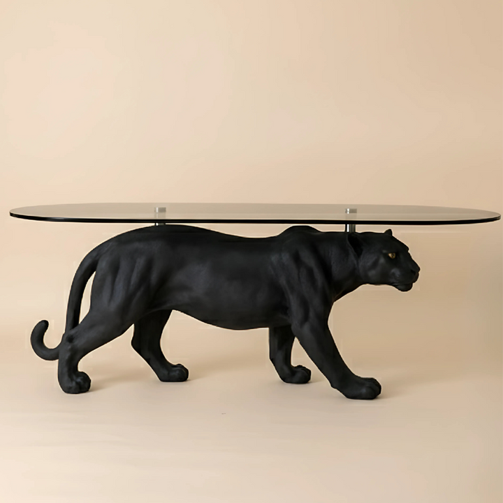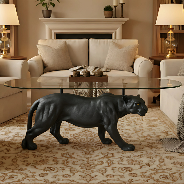 Bring bold sophistication to your living space with Darkstride, a striking fusion of modern design and untamed elegance. This coffee table features a sleek black leopard sculpture supporting a tempered glass top—perfectly blending wild beauty with contemporary style.