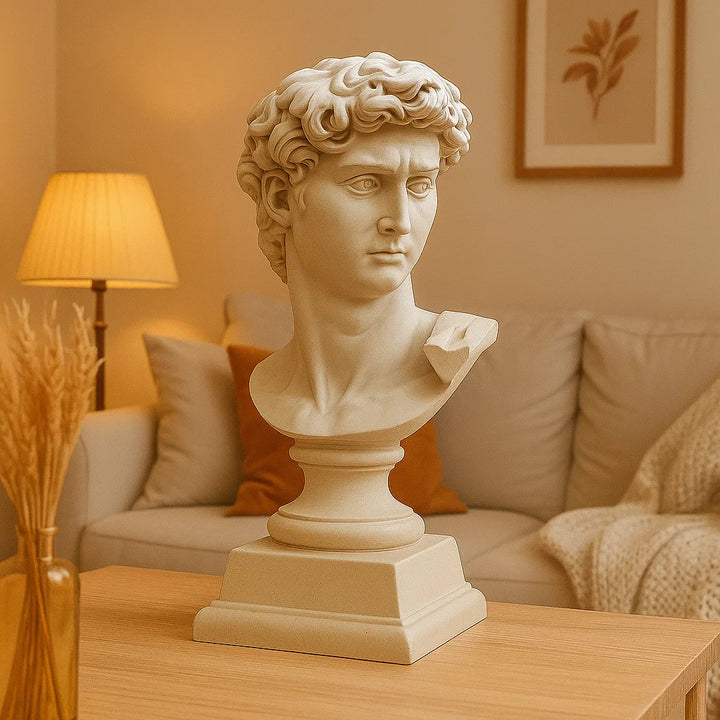 Bring timeless elegance into your home with this David Bust Sculpture, inspired by one of the most iconic masterpieces of Renaissance art. Crafted with meticulous attention to detail, this sculpture captures the strength and beauty of classical form, making it a striking centerpiece for any interior.